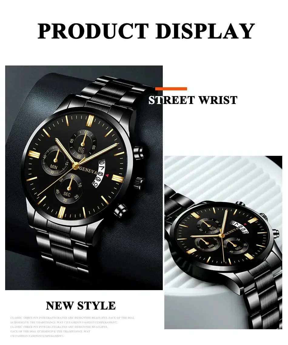 Fashion Men Black Stainless Steel Watch Luxury Calendar Quartz Wrist Watch Mens Business Watches for Man Clock Relogio Masculino