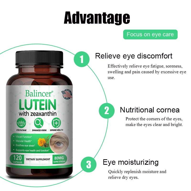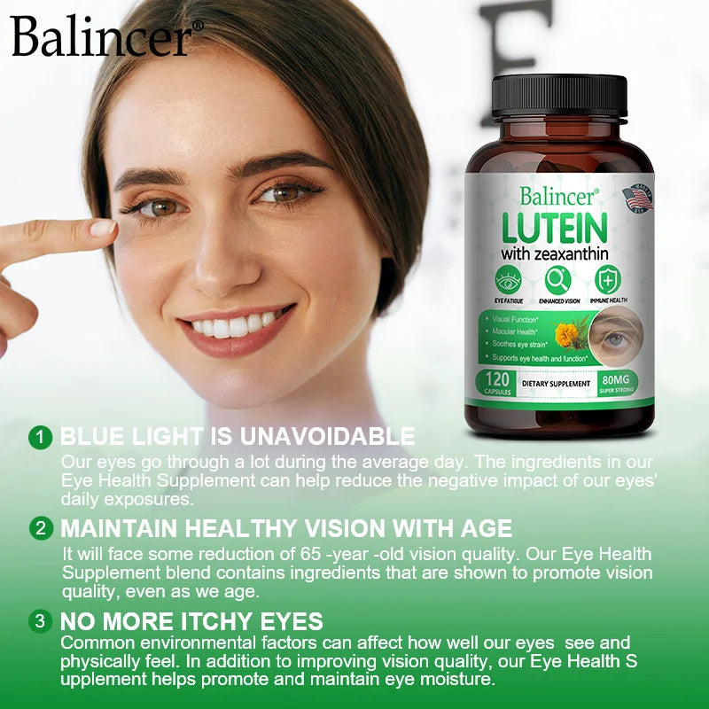 Lutein Capsules - Vision Vitamin Supplements To Relieve Eye Fatigue and Dryness, Help Vision Health and Blue Light Protection
